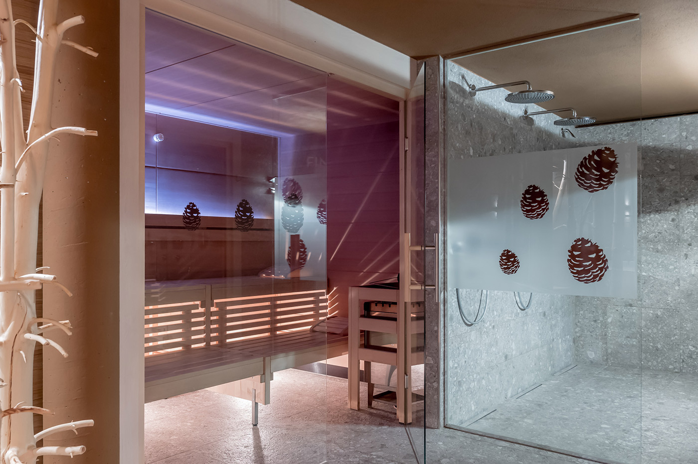 The Zirbenwald sauna area at Apart Hotel Wieser offers sauna enjoyment for mountain lovers in a unique location high above Sölden – and it’s included for all our guests. The scent of local pine wood accompanies you through the Finnish sauna, bio sauna, and infrared cabin. After a day on the slopes, trail, or hiking paths, there’s little better than this for us. And for you? Relax in the quiet area with comfortable massage chairs and rocking loungers, while the view through the panoramic windows brings the majestic Ötztal Alps into your room. Only at your Apart Hotel Wieser with the pine sauna area in Sölden.